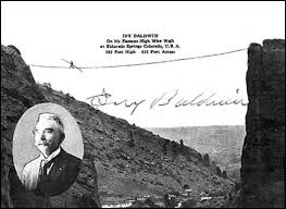 Ivy Baldwin was a dare-devil as well as a balloonist. In addition to offering balloon rides, he performed a jumping act from the balloon. On one Independence Day, he jumped with lit fireworks strapped to his back, performing the stunt despite the danger with the hydrogen and lack of an asbestos suit (he ordered one but it failed to arrive in time). Over the course of his ten years at Elitch’s, he performed some 5000 jumps.
