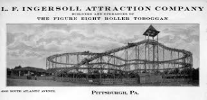 American roller coaster history began with the Mauch Chunk Railway. This early coast was actually a coal mine transportation system. It was designed to take coal from the top of a 1260 foot high mountain to the port town, some 18 miles distant. Since 17 of those miles were downhill, the railway used simple gravity with mules pulling the empty cars back up. To solve the problem of too many mules ending up at the top, a car was designed to accommodate the animals so they could ride back down with the coal. Someone decided the workers should ride down each evening! Eventually, the mules were replaced by a steam engine that pulled the cars up a more gradual incline. It didn’t take long for the entire system to become the Mauch Chunk Scenic Railway with passengers paying $1 to ride to the top and back down. In 1870, the coal mine began using shorter route and the Mauch Chunk was devoted entirely to pleasure rides with a hotel and restaurant springing up at the top. The railway remained open until 1930. Today, the site is a historic landmark.