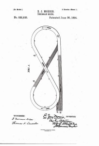 Figure 8 roller coasters also developed in the late nineteenth century. This design allowed more turns. Early coasters at Coney Island were based on this design, as was the first roller coaster at Elitch Gardens in Denver. Track mounted brakes were developed so that brakes could be controlled from the station rather than by an attendant in the car. In 1898, the loop-the-loop was tried again. The Flip-Flap Railway used a true circle loop and the forces snapped riders’ necks! Modifying the loop to an oval made it safer but the low capacity (only four could ride) and fear from the public kept it from catching on at that time.