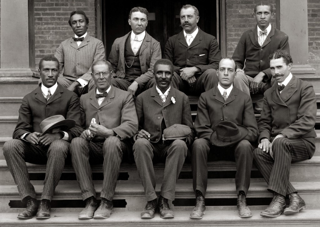 Men’s fashions also became less formal around the turn of the century. The frock coat gave way to a shorter, less fitted look in the sack coat or lounge coat. Three piece suits continued as business-wear, consisting of a sack coat, vest, and trousers. Often, either the vest or the trousers contrasted the ensemble. Formal wear continued to consist of the cutaway morning coat and striped trousers for day and a dark tail coat and trousers with a light vest for evening. Top hats were still worn for formal events with felt Homburgs or bowlers for more casual occasions. A dinner jacket might be worn for men’s club activities or less-formal dinners. Shirts had tall, stiff collars—winged collars on dress shirts. The dress shirt was white and occasionally buttoned in the back. A striped shirt might replace white for casual wear. The four in hand necktie was most common with either ascots or bow ties for formal events.