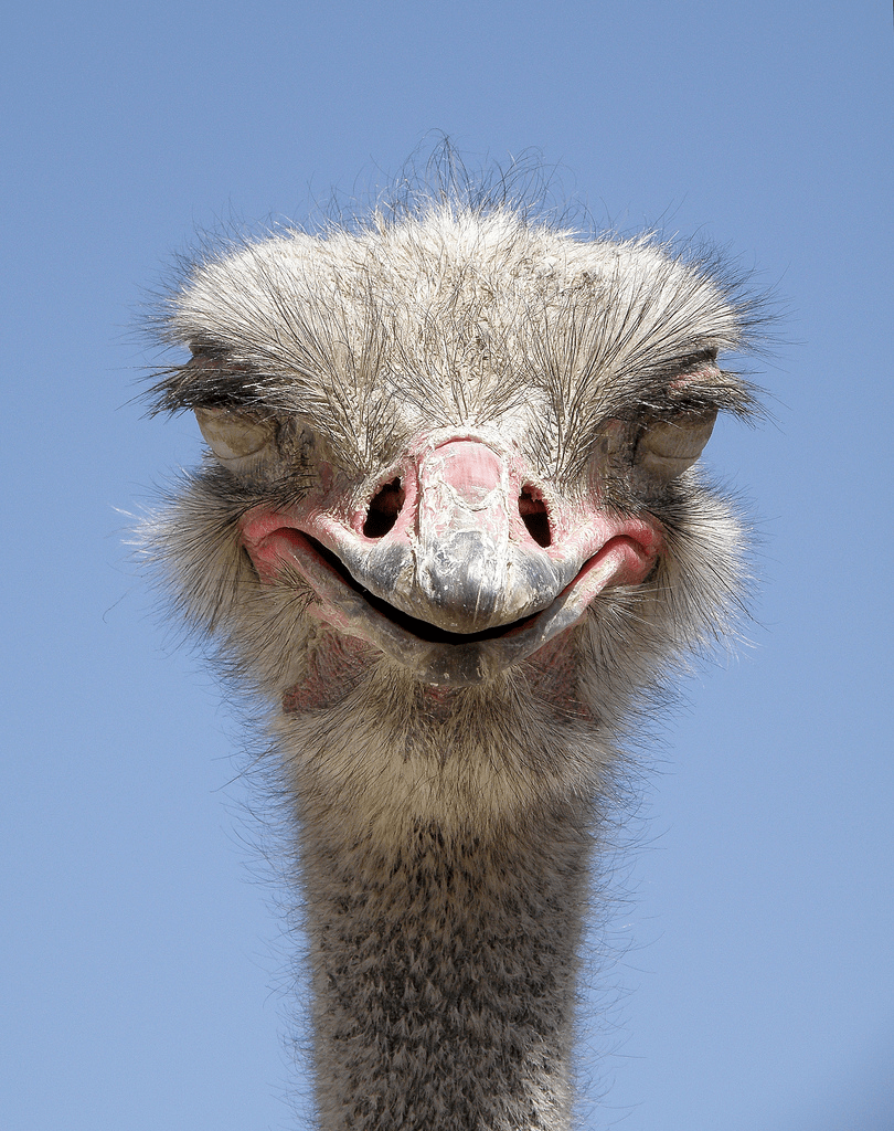 Ostriches are native to central and southern Africa, living in savanna and desert habitats. The world’s largest birds, they grow to a height of seven to nine feet and can weigh between 220 and 350 pounds. According to researchers, the flightless bird once roamed across Asia, greater Africa, and the Arabian Peninsula. They get most of their water from the plants they eat and were once known as the “camel bird” both for their ability to survive in dry climates and their appearance (long neck, prominent eyes, sweeping eyelashes, and jolting walk).