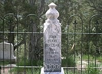 Doc’s last known confrontation was in Leadville, Colorado in 1884, when he was involved in an argument about a debt owed to bartender Billy Allen. Holliday was arrested for shooting Allen but claimed self-defense; he was acquitted. Increasingly reliant on alcohol and laudanum to ease the pain of his worsening tuberculosis and no longer able to support himself through gambling, he moved to Glenwood Springs, Colorado to be near the local hot springs. He died at the Hotel Glenwood on November 8, 1887 at the age of 36. Kate was said to have been with him in his final days. Wyatt Earp learned about his death two months later. Holliday was buried in Linwood Cemetery. His body was later moved to Griffin, Georgia, his home town.