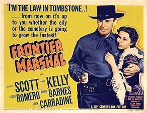 The legend of Wyatt Earp emerged full force in 1939 with the release of FRONTIER MARSHAL. The heavily romanticized film starred Randolph Scott as Wyatt. The film was inspired by Stuart Lake’s biography, which in turn was heavily influenced by Wyatt’s last wife, Josie (Josephine/Sadie) Marcus. Earp had died ten years prior and Josie had litigated with biographers for years to shape the story, eliminating all references to Wyatt’s shady past, including to her and to his second wife Mattie (Celia) Blaylock. The film is centered around events in Tombstone and largely fictional but it’s appeal was wide-spread and (despite Josie’s resistance to the film itself) launched the noble lawman image she had worked so hard to create into the legend it became.